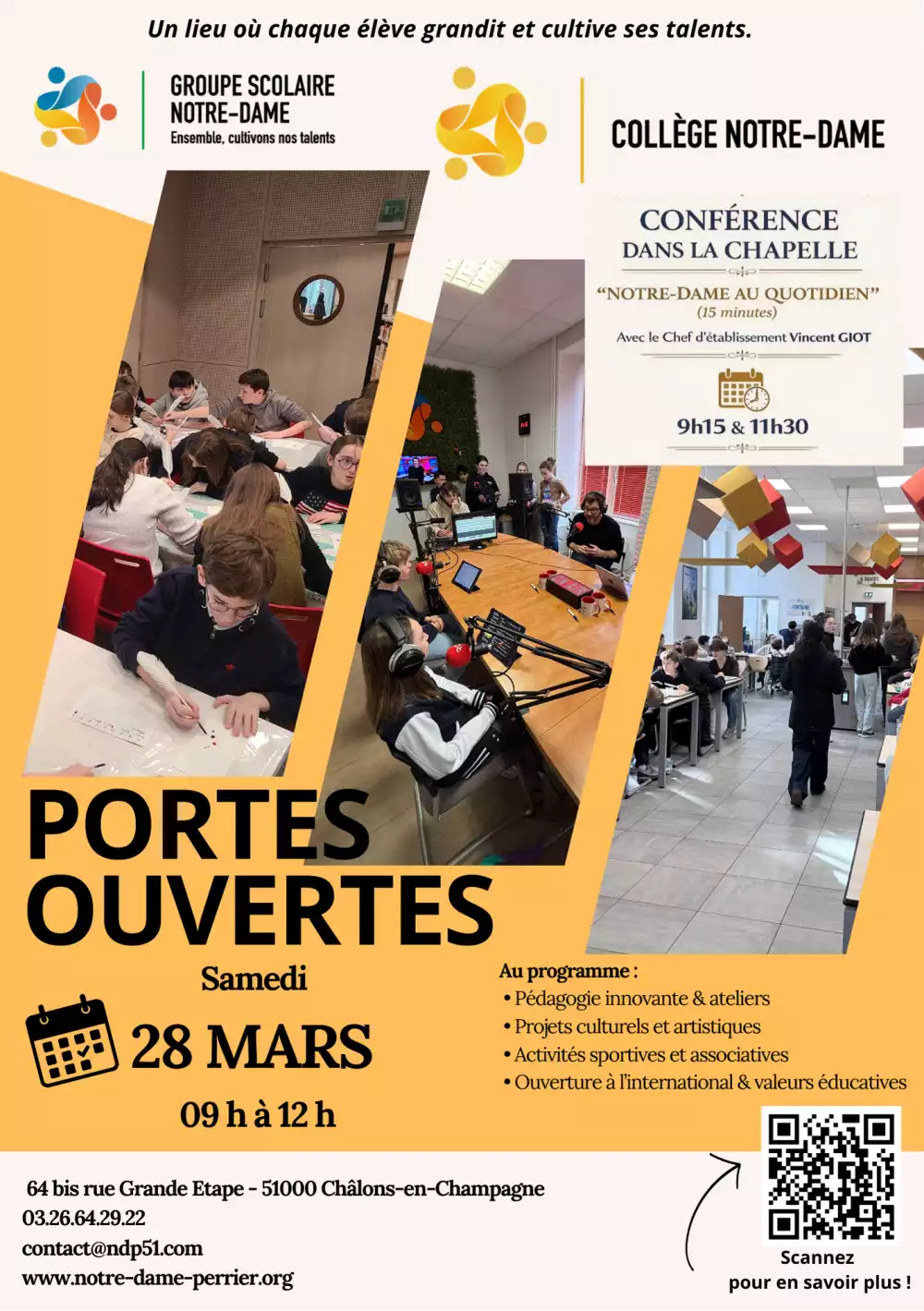Le Collège Notre-Dame dirigé par Vincent Giot, incarne notre mission éducative à l’échelle d'un établissement secondaire. Nos élèves évoluent dans un environnement où les valeurs humaines et évangéliques prédominent, contribuant à un développement moral et intellectuel harmonieux. La communauté éducative œuvre conjointement pour créer un climat de respect, d’entraide et de confiance, essentiel au bien-être et à la réussite des jeunes.