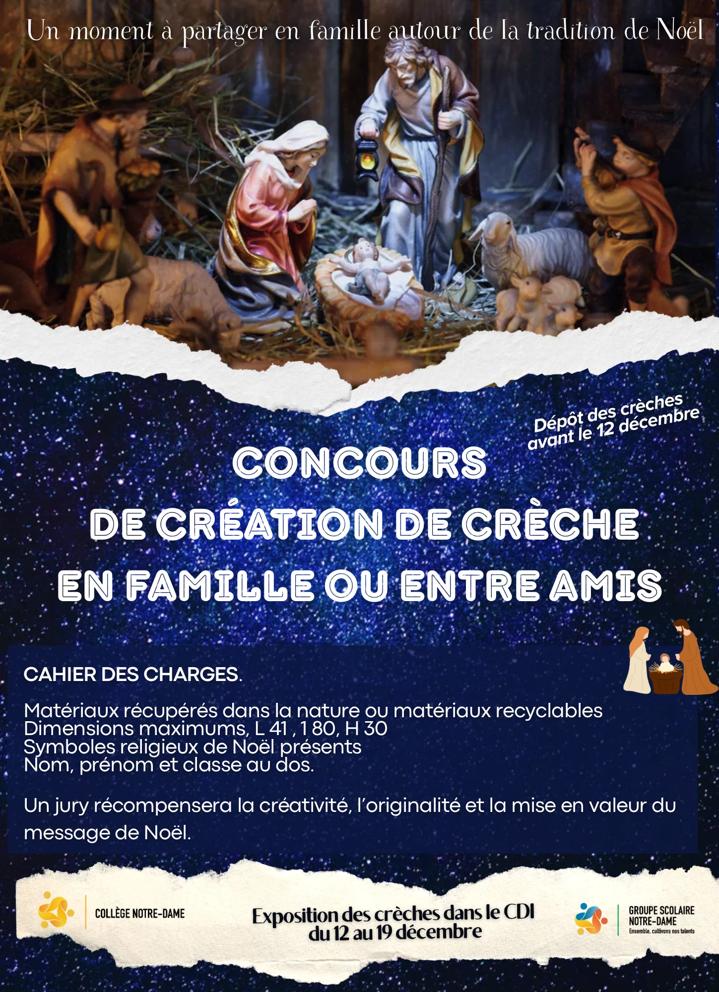 • Le partage, la célébration et l’annonce de la foi entre chrétiens jeunes ou adultes : le temps de prière hebdomadaire du mardi, les célébrations ou les messes au collège, le concours de crèches, la confession durant le temps de Carême, le chemin de croix et l’opération bol de riz, …