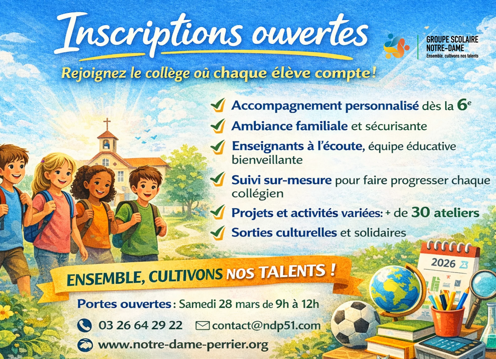 LES INSCRIPTIONS POUR L'ANNÉE SCOLAIRE 2025-2026 ONT DÉBUTÉ.